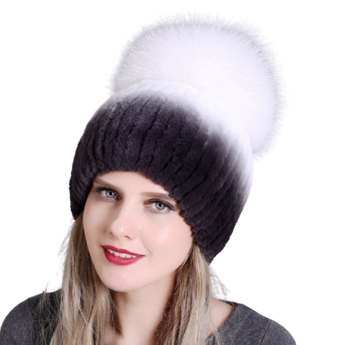 Bonnet à pompon géant en véritable fourrure de raton laveur